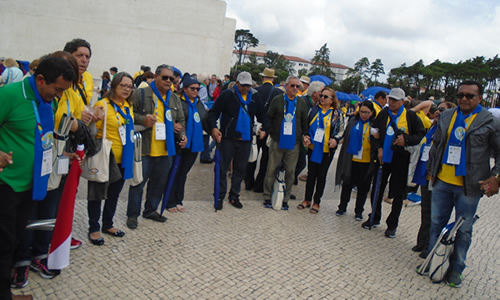 Parte do grupo do Pará na concentração para deslocamento à Cerimônia de Abertura do Encontro de Fátima.
