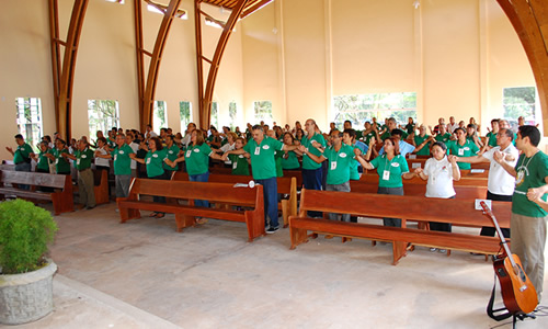 Sob as bênçãos da Sagrada Família, os participantes do EACRE 2014 de Belém reunidos na igreja da Paróquia S. Pio X, ao lado do CCFC. (Foto: Paraense).